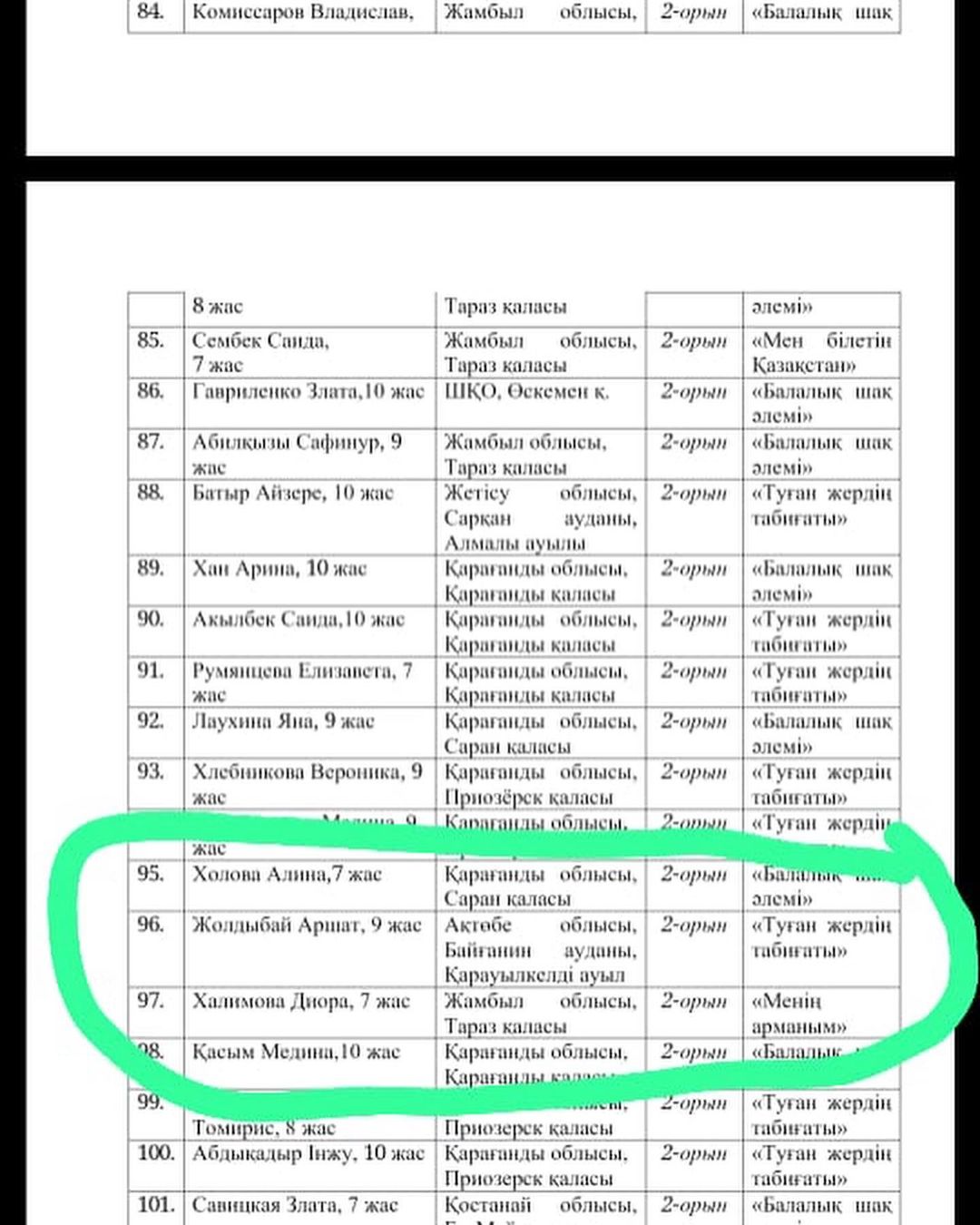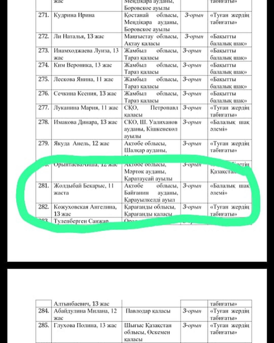 "Балалық шақ әлемі" номинациясы:
