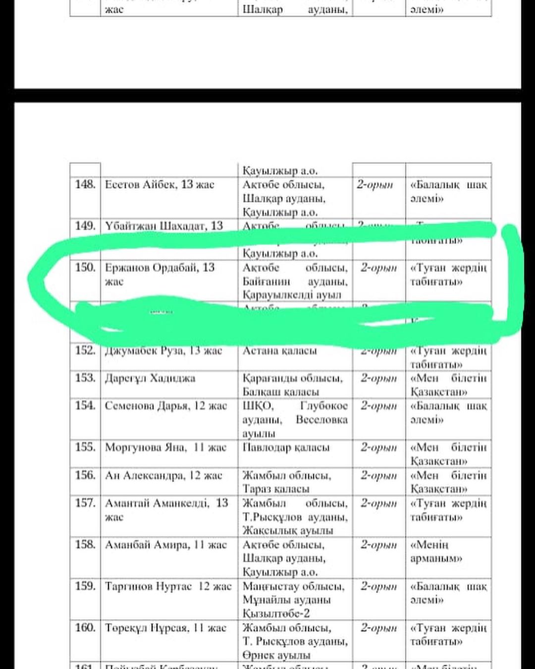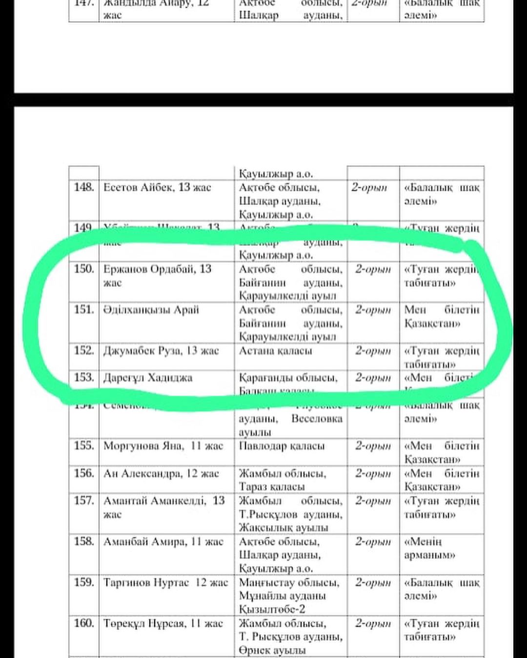 "Мен білетін Қазақстан" номинациясы: