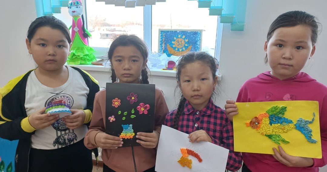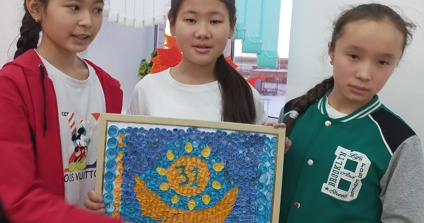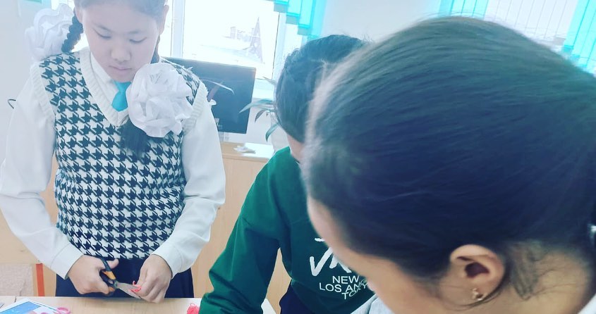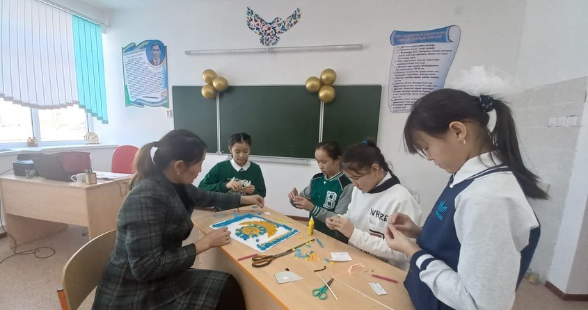 "Шебер қолдар" үйірмесінің мүшелері сабақ барысында