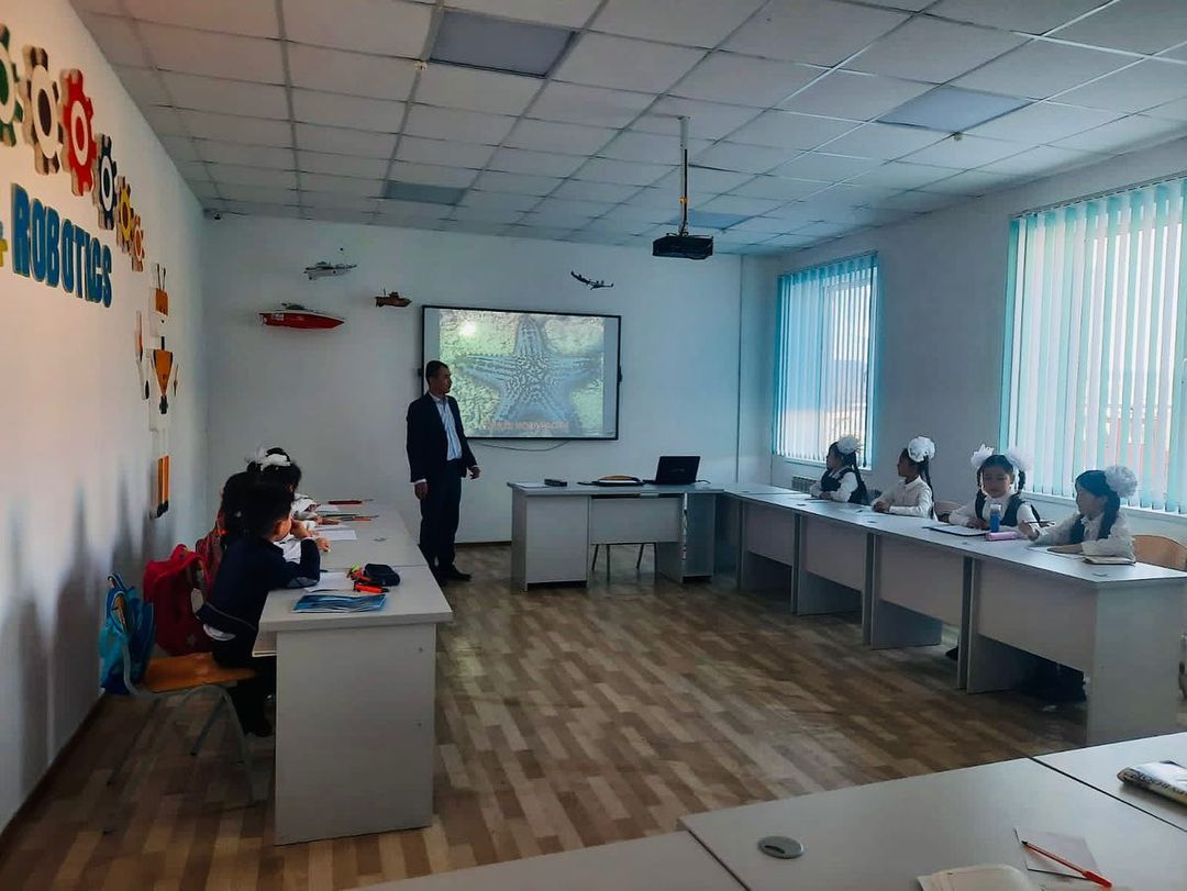 онда тіршілік ететін жануарлар мен жәндіктер туралы түсінік бере отырып, қоршаған ортаны таза ұстауға, табиғатқа деген сүйіспеншілікті қалыптастыру мақсатында "Су асты әлемі" тақырыбында ашық сабақ өткізді.