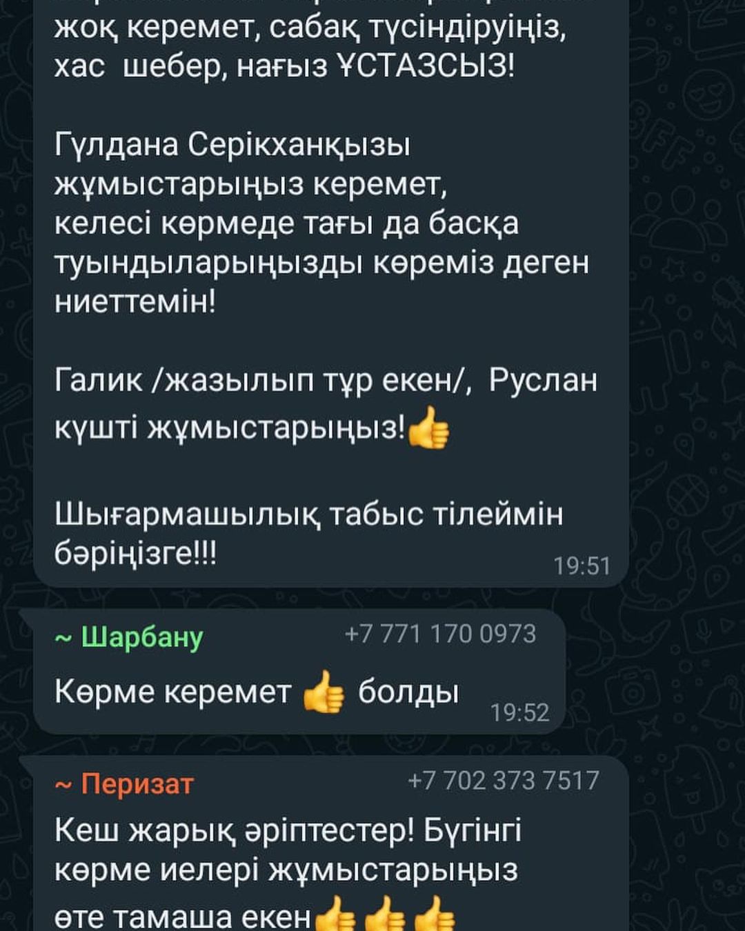 Гүлдана Серікқызының суретші әріптестерімен туындылары, көрермен мамандардың жылы лебіздері карусельді жылжытып қараңыз