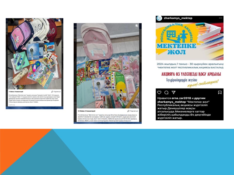Қазақстан Республикасы Оқу-ағарту министрінің 18.07.2023 жылғы №5-15-2/4267-И хаты негізінде аз қамтылған көп балалы отбасылар қатарындағы оқушыларға, жетім балалар мен ата-анасыны қамқорлығынсыз қалған балаларға оқу жылының басталуына дайындық кезеңінде көмек көрсету және әлеуметтік себептер бойынша мектепке келмеуінің алдын алу мақсатында «Мектепке жол» 2023 жылы «Жақсылықты жаса» ұранымен өткізіледі.
